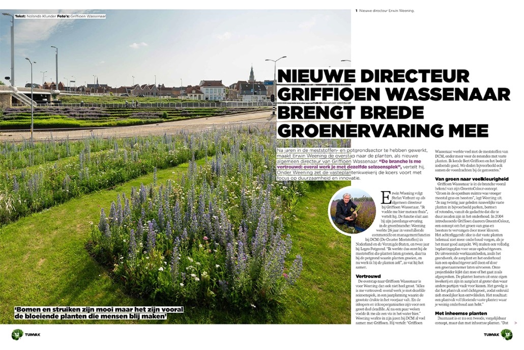 Na jaren in de meststoffen- en potgrondsector te hebben gewerkt, maakt Erwin Weening de overstap naar de planten, als nieuwe algemeen directeur van Griffioen Wassenaar. “De branche is me vertrouwd: overal werk je met dezelfde seizoenspiek”, vertelt hij. Onder Weening zet de vasteplantenkwekerij de koers voort met focus op duurzaamheid en innovatie.